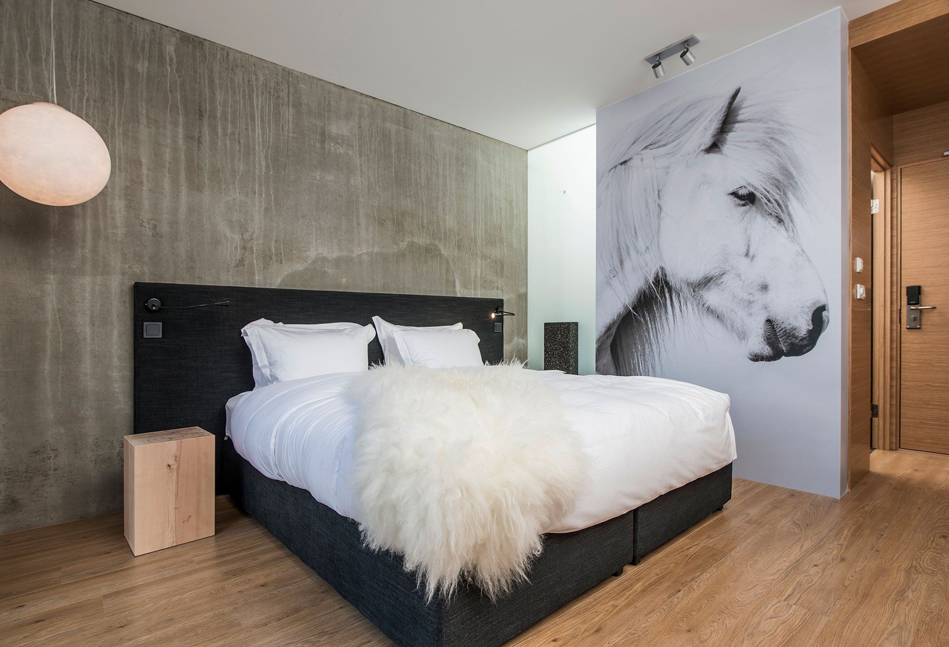 ION’s guest rooms are decorated in a style that’s appropriate to the landscape, largely monochrome, with rough concrete walls, rich hardwood floors, and furniture made from reclaimed driftwood. The bedding is top-notch, and the bathrooms are suitably immersive and spa-like.