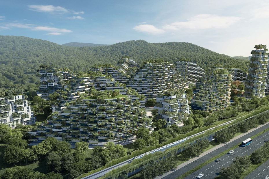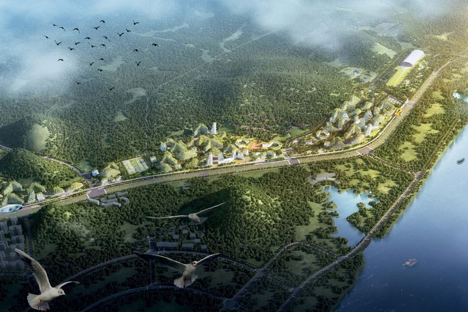 Occupying 175 hectares along the Liujiang River, it will have houses, offices, hotels, hospitals, schools and other buildings entirely covered with plants and trees. In all, it will host 40,000 trees and almost a million plants of more than 100 species.
